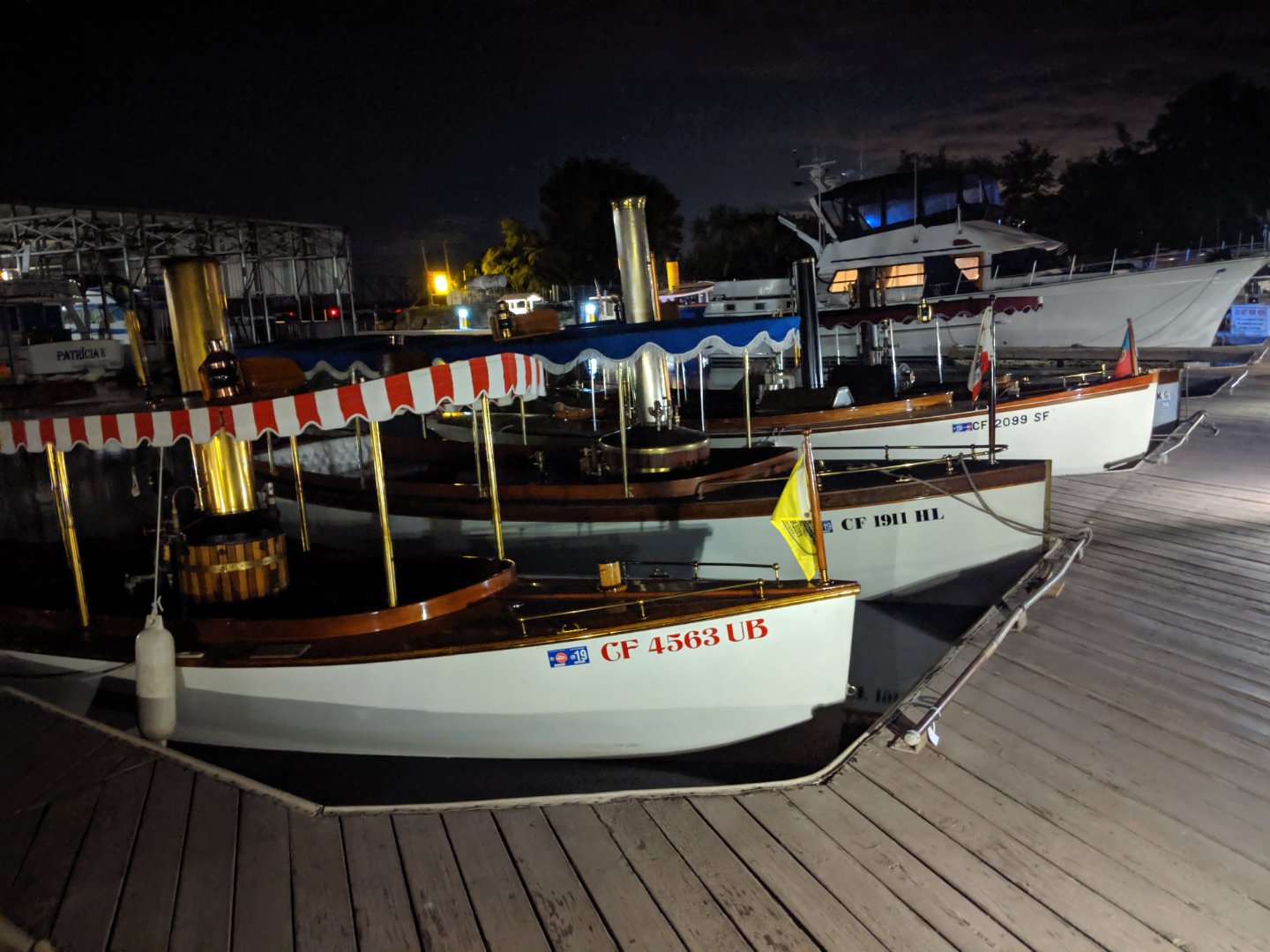 Saturday was spent steaming to the picnic at Westgate Landing Park where folks ate in their little groups at the picnic tables. After steaming back there was a little swap meet, and then folks cooked up their masterpieces for the potluck dinner. A couple of the more adventurous boats went out after dinner for an after dark steam up Georgianna Slough in the starlight.