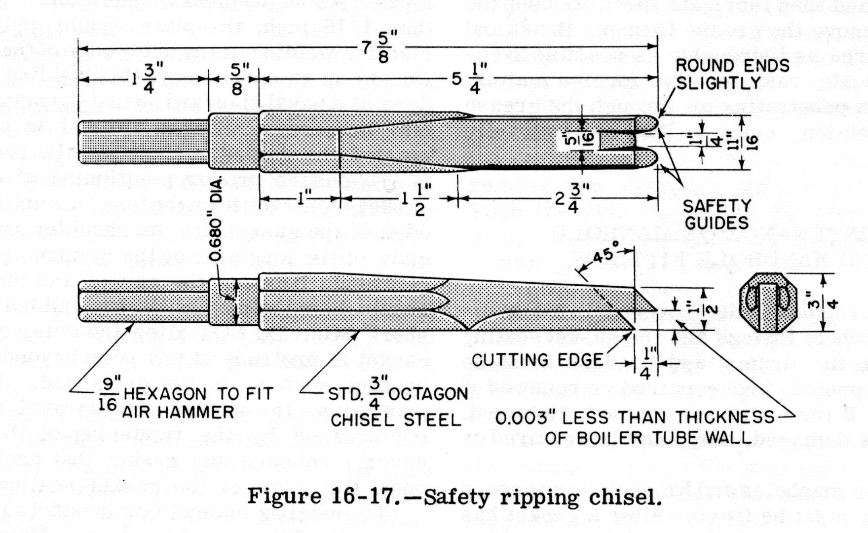 This might be a little over the top, but on a smaller scale the operation is much the same. Instead of a plane round nosed gouge a " safety ripping chisel " was used by the boilermakers when they removed a tube for inspection on the ship I was on. The tool is ground with the sides cut back allowing only the center to cut just less than the thickness of the tube wall. Hard to explain clearly, I'll see if I can find a drawing of one that I can post.