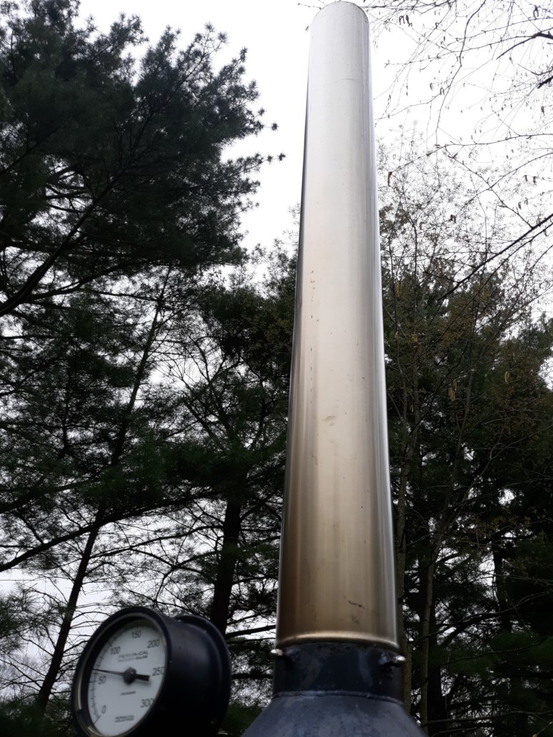 To prevent further involuntary stack contributions to Lake Chautauqua a new SS 5ft (2ft taller then previous) smoke stack and modifications to the bonnet were completed.