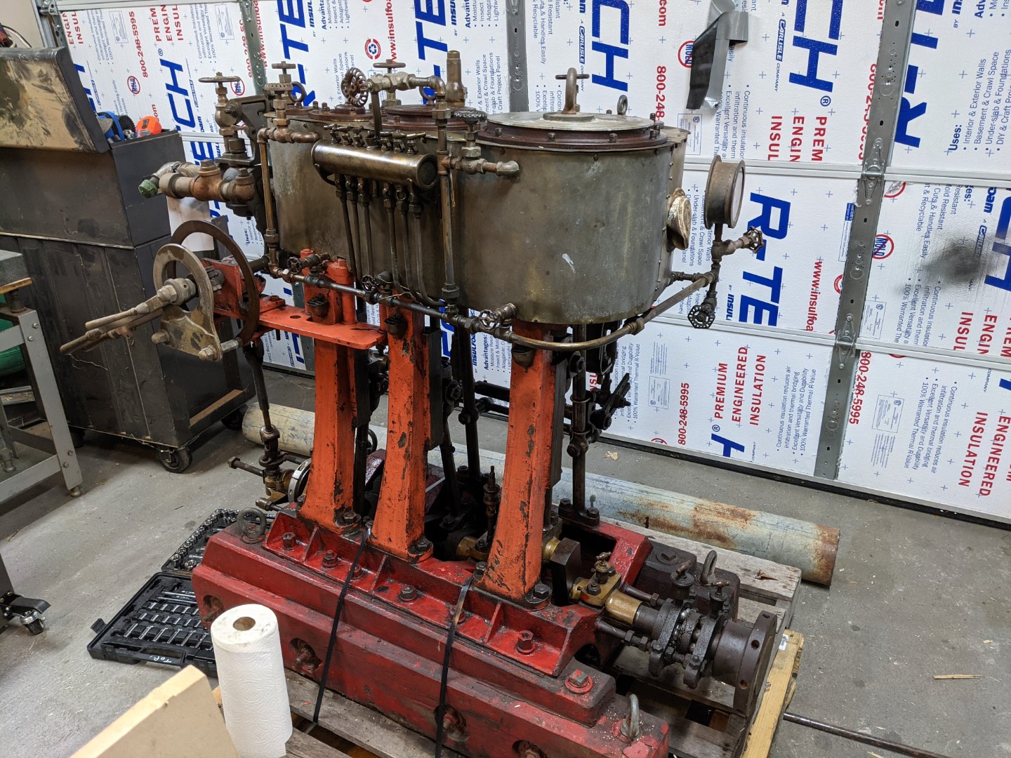 Engine is very lightly built. Nowhere on the cast frame or columns is much more than 1/4" thick, save for the mounting flanges. Rods are about the same thickness as those on the very first York compound I have.