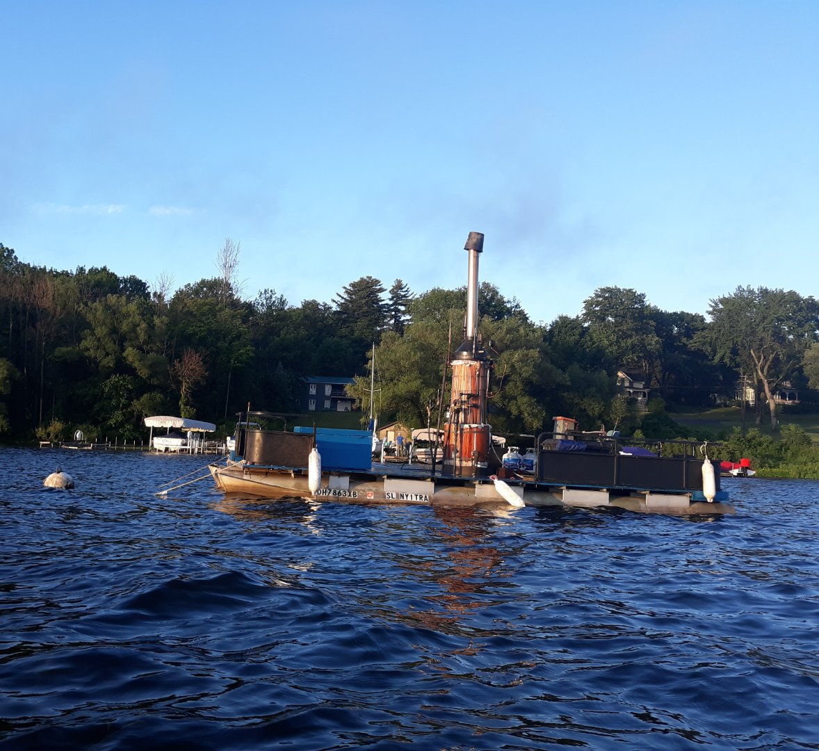 The Chautauqua Belle was out on an excursion on this rainy day, I believe they heard Nyitra and the Belle came to say hello to Nyitra on her mooring. we had a drive-by steamboat whistle hello.