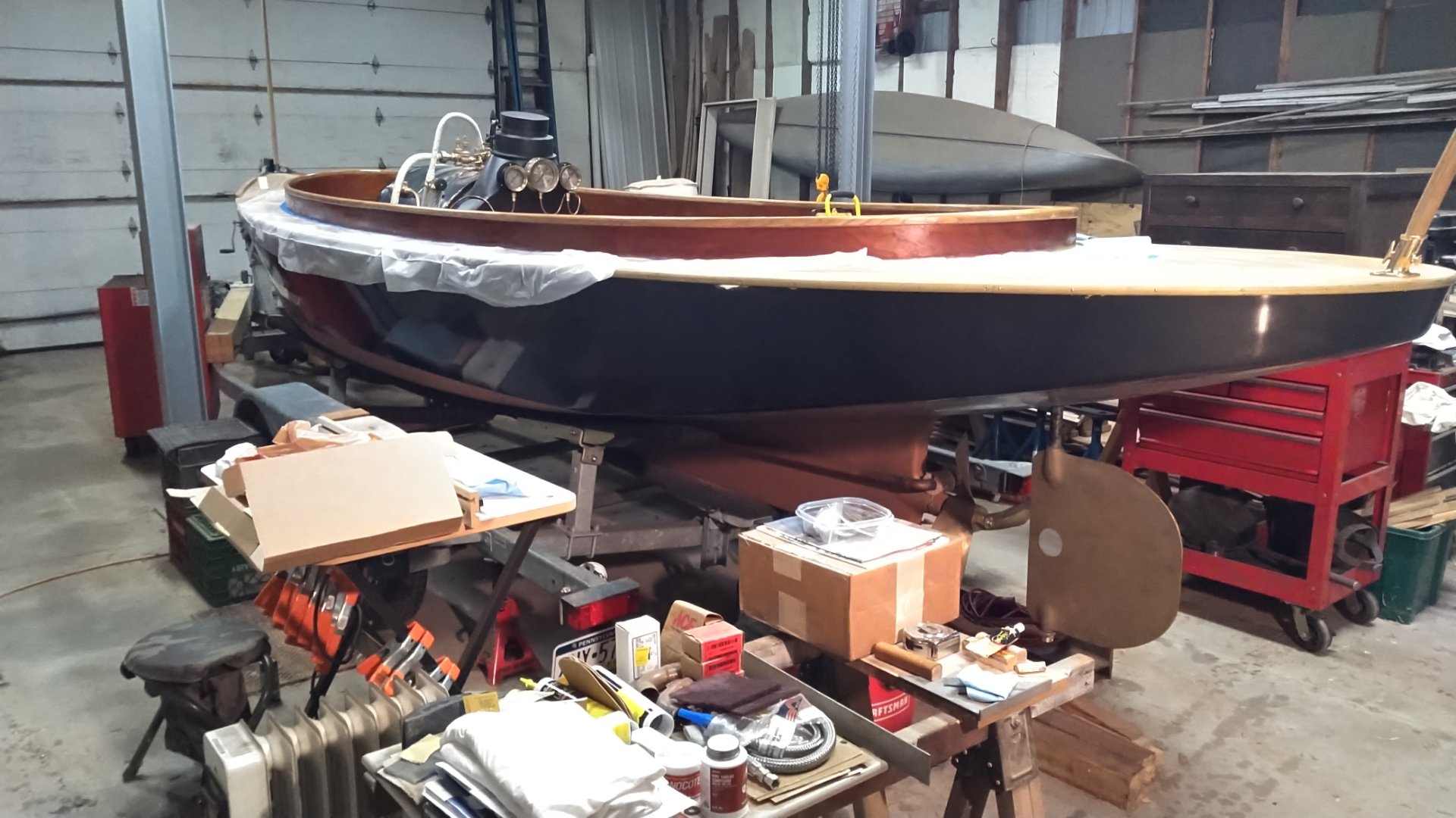Little by little ... My Christmas shot for 2021. Trim is finished. Now crafting the starboard quarter seat. The gunmetal flagstaff holder is from cousins across the pond ...
