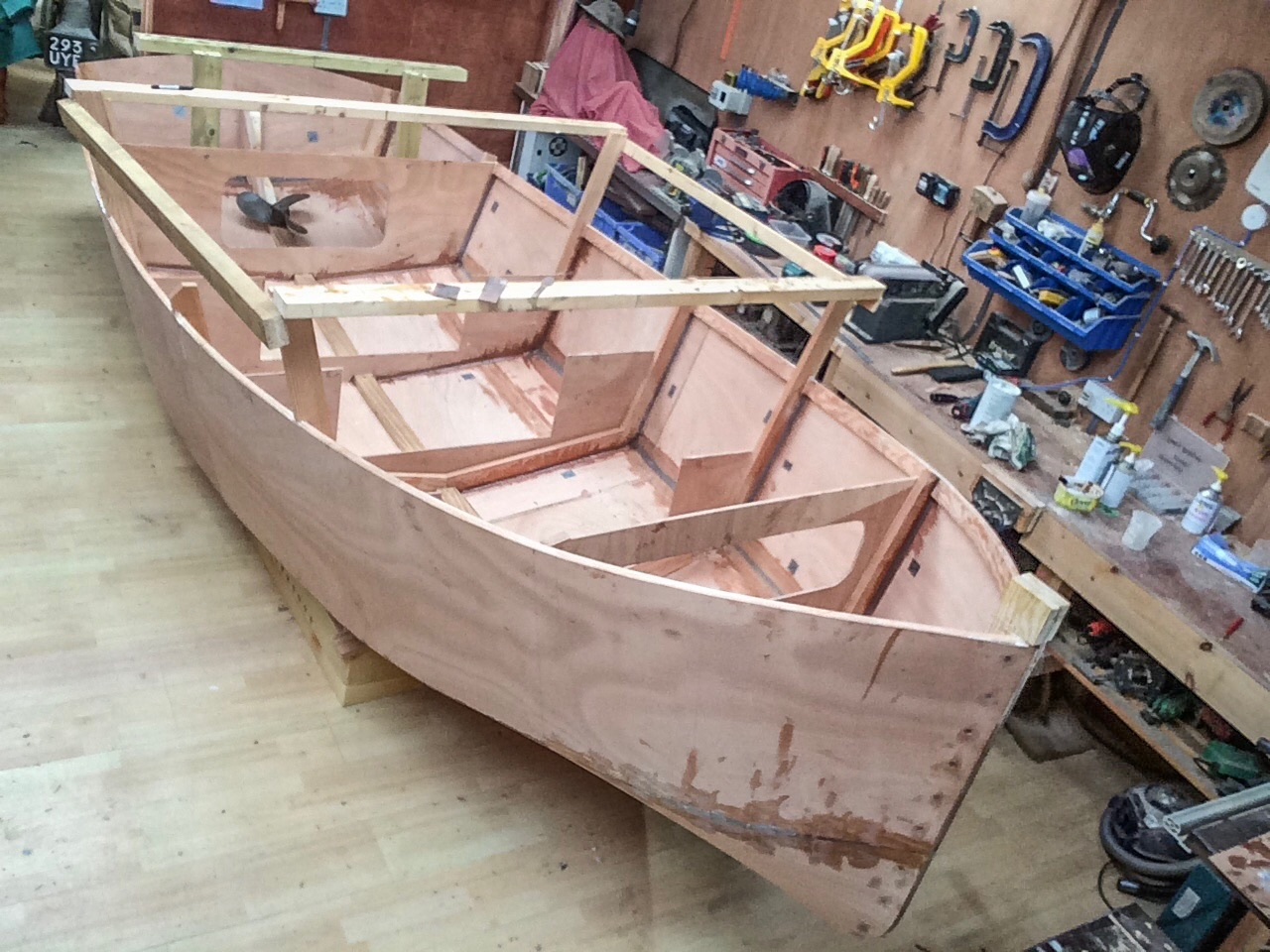 The “horrible” patch is where the ply panels didn’t quite meet. This won’t be a problem as the second skin has been cut oversize ready to be trimmed back as necessary.