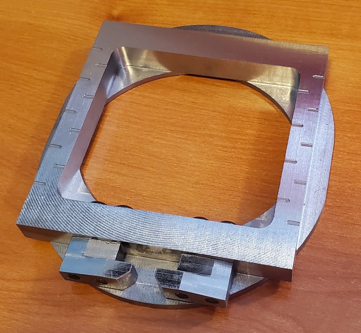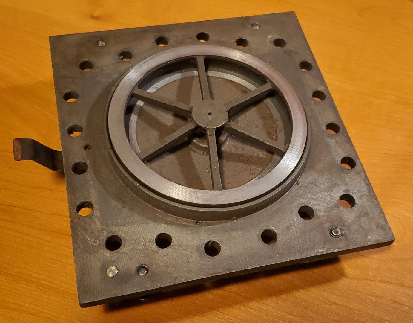 The dead-end shallow slots along the sides of the valve seat are a feature sometimes seen in locomotive slide valve to allow oil to reach these normally dry areas of the valve.