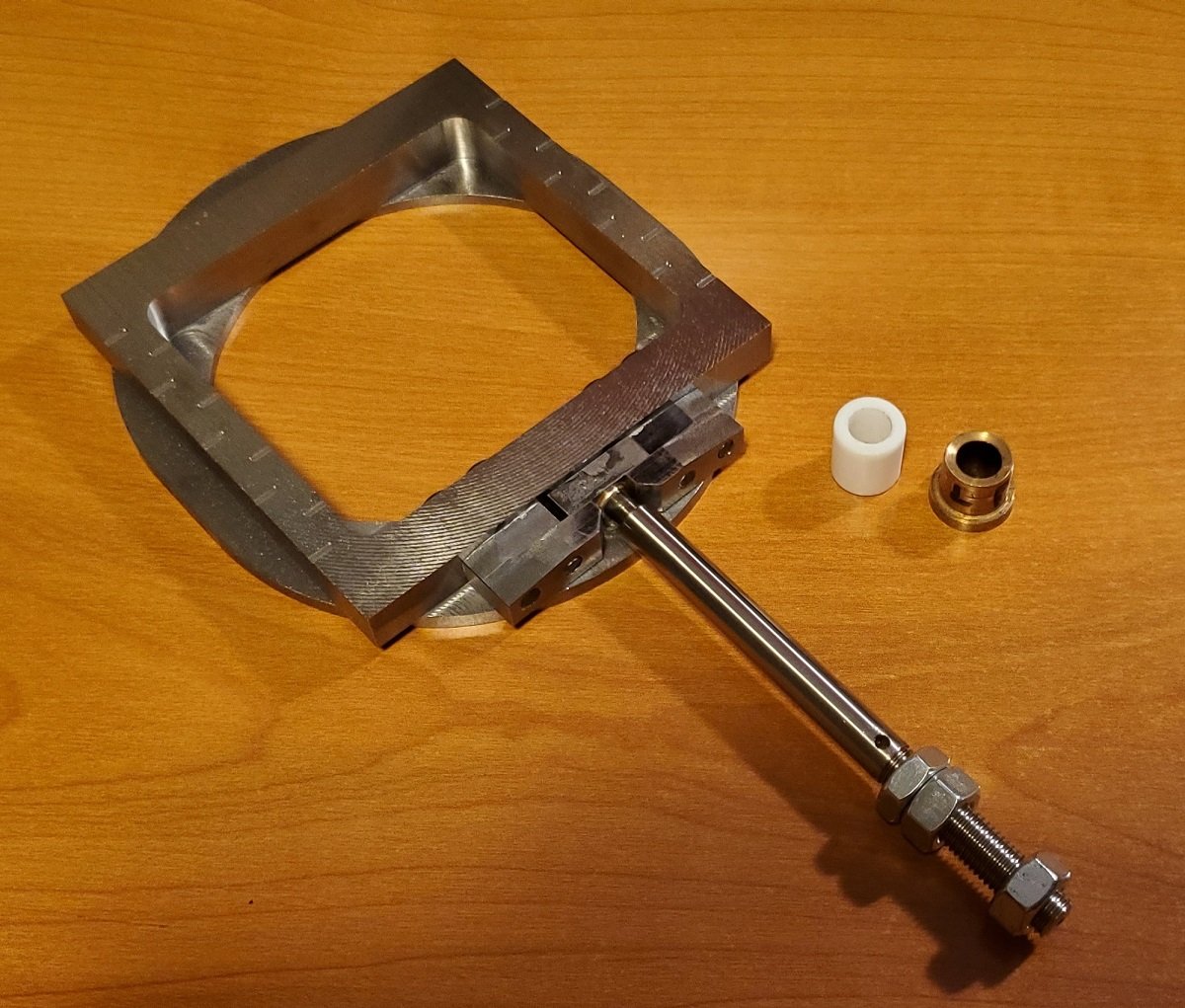 The original low-pressure slide valve in my launch engine needed to be replaced this spring due to heavy wear in the cast in T-slot that connects it to the valve stem, so I hogged the new one from G2 cast iron plate, and to assist with potential wear on the bottom faces of the T-slot, I made those pieces and the block at the top of the valve stem from 4140 steel. The valve stem is Monel.