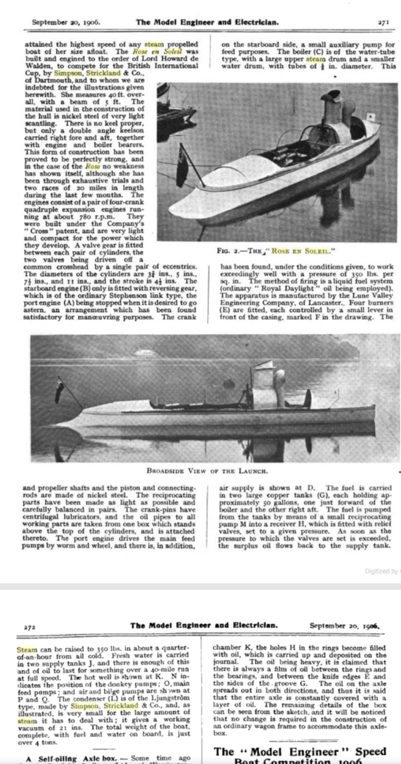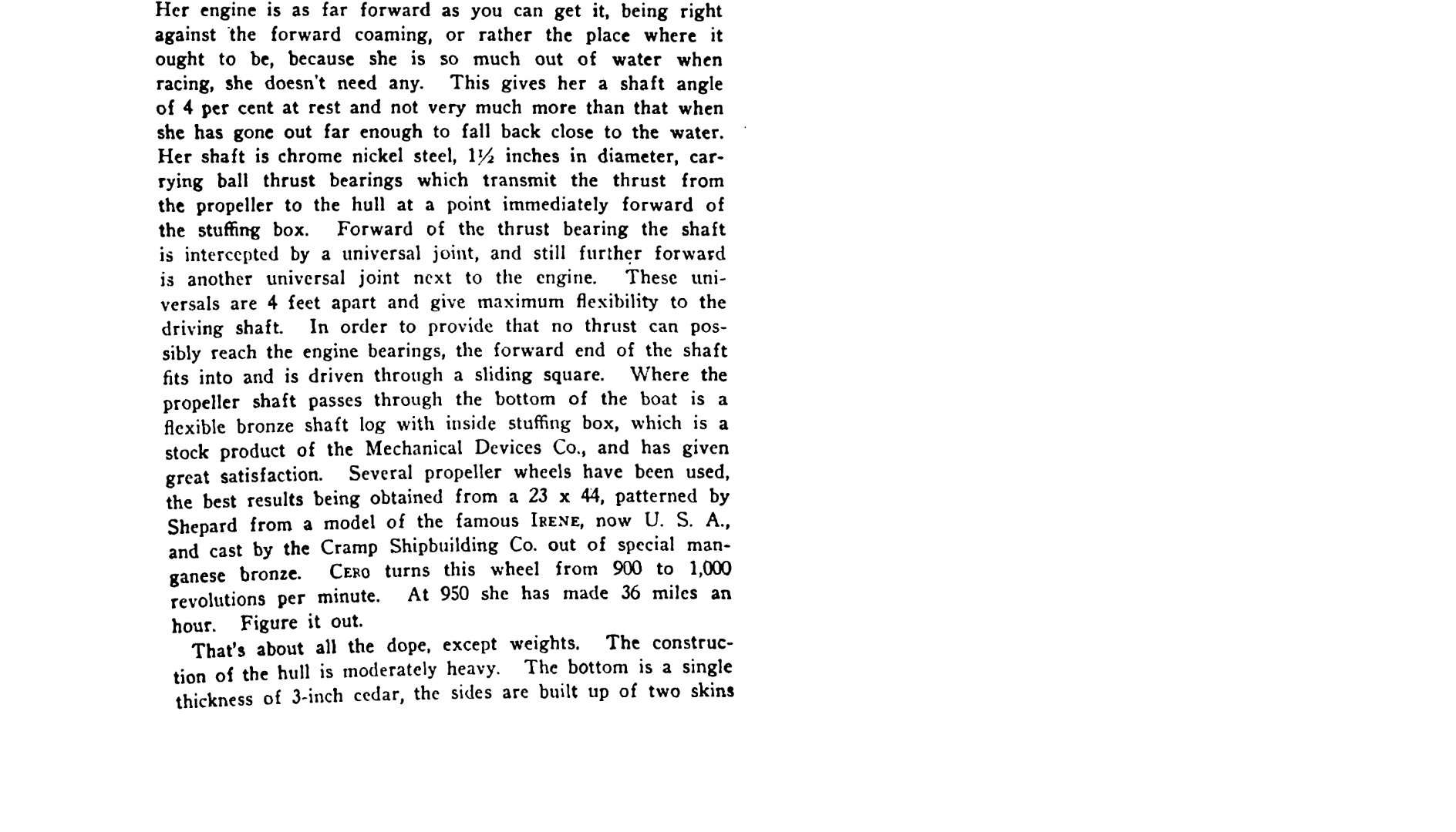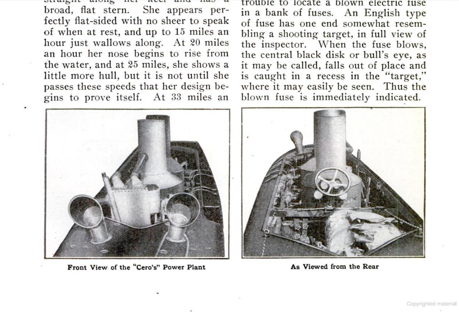 I have attached several clippings of period articles from Powerboating Magazine, The Rudder, and Popular Mechanics.