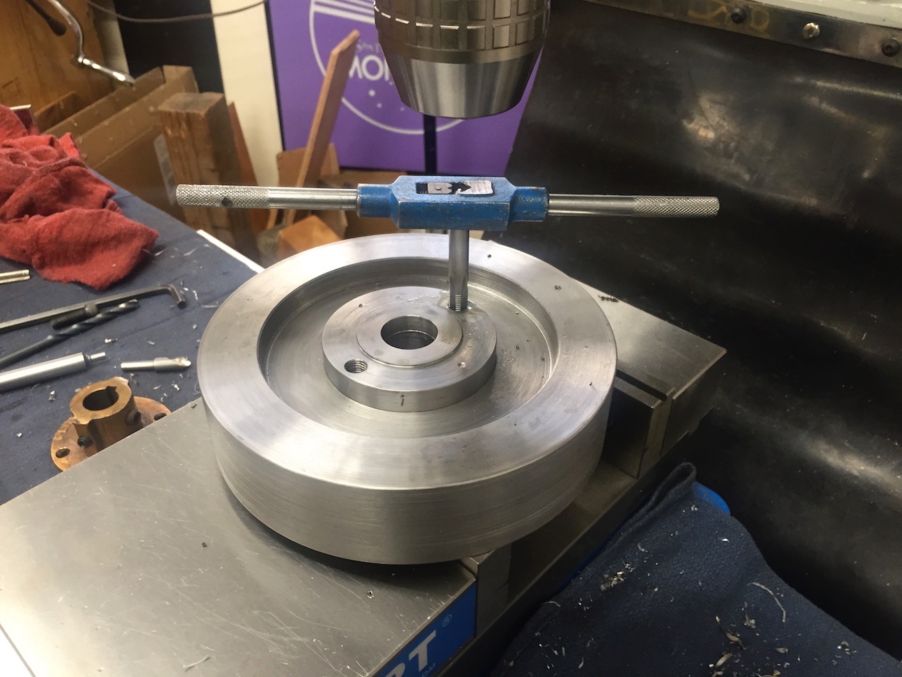 The new flywheel is machined from two steel parts pressed together. It came out very nicely.