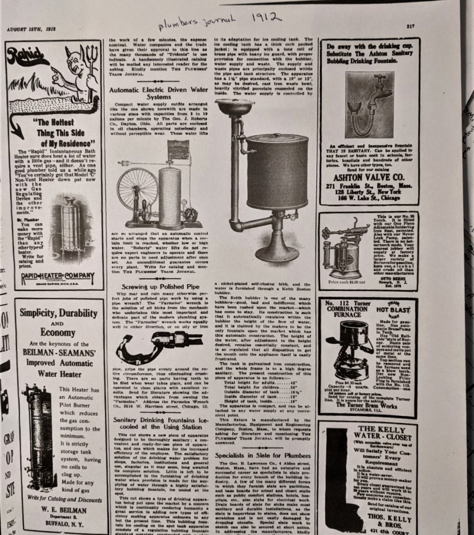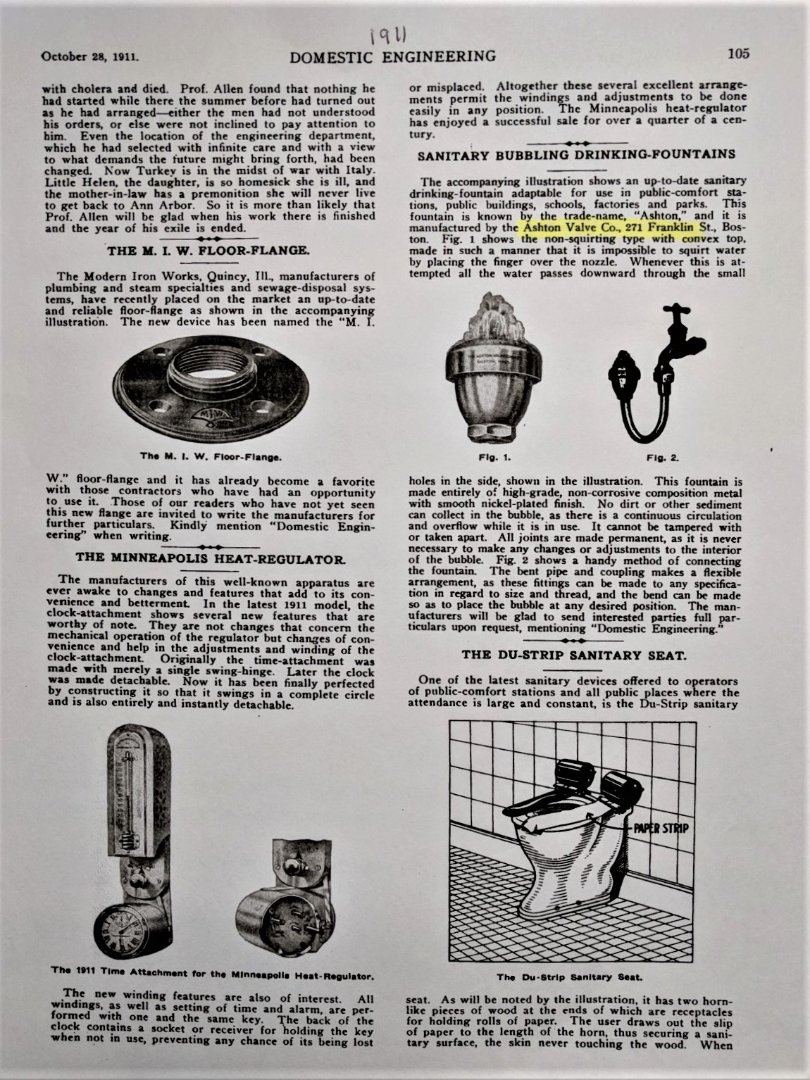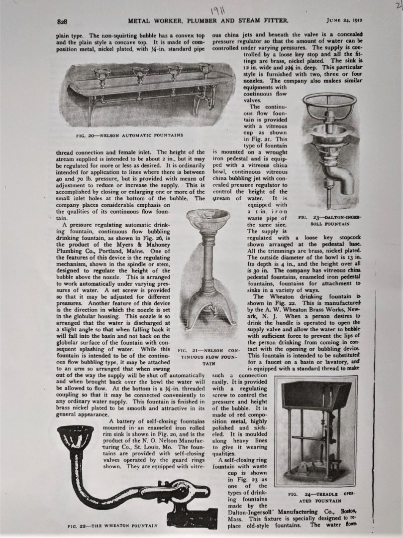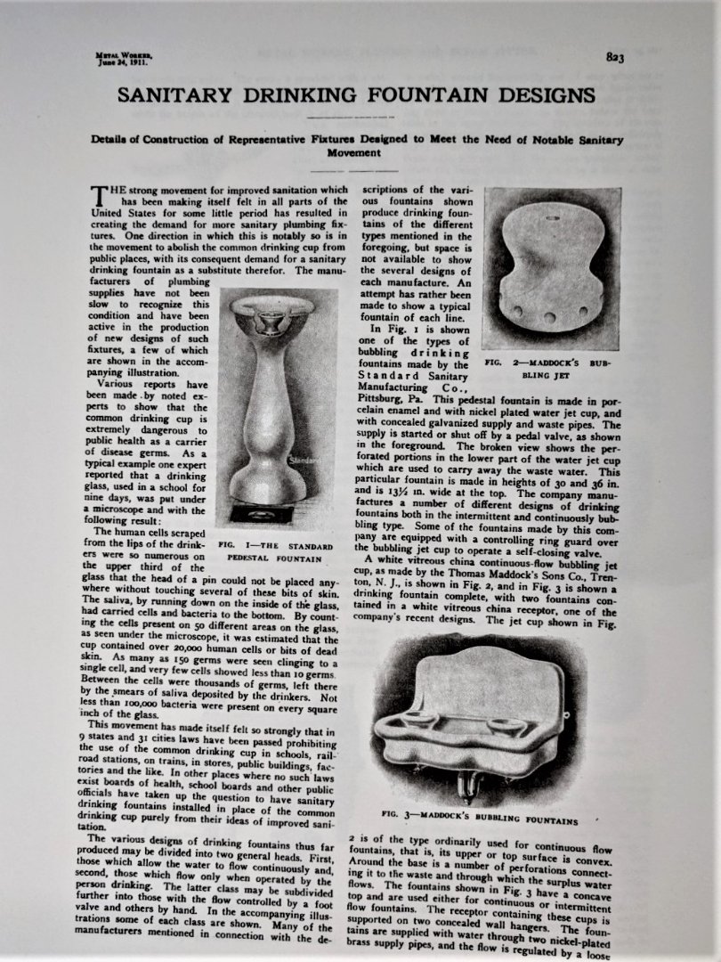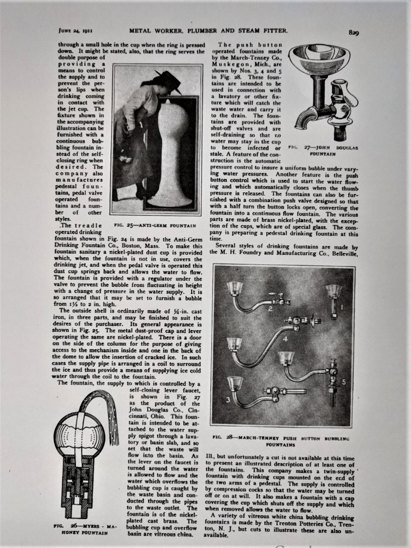 At the beginning of the 20th century people refreshed themselves at public fountains and all drank from the same COMMON CUP, as it was called. Well, sickness and death soon followed and Ashton Valve soon had their line of sanitary bubblers on the market.