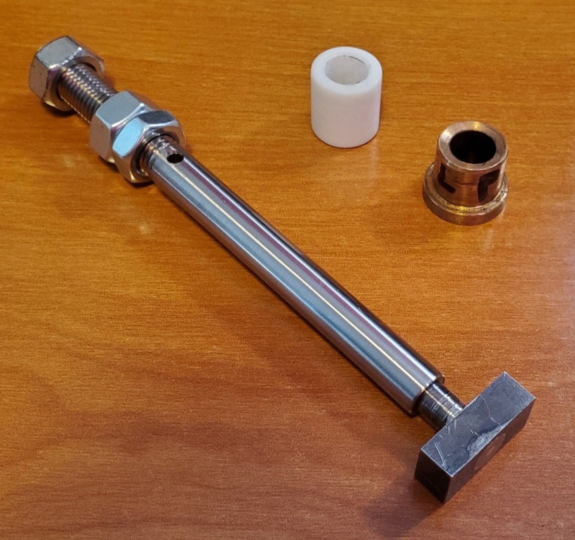 The original low-pressure slide valve in my launch engine needed to be replaced this spring due to heavy wear in the cast in T-slot that connects it to the valve stem, so I hogged the new one from G2 cast iron plate, and to assist with potential wear on the bottom faces of the T-slot, I made those pieces and the block at the top of the valve stem from 4140 steel. The valve stem is Monel.