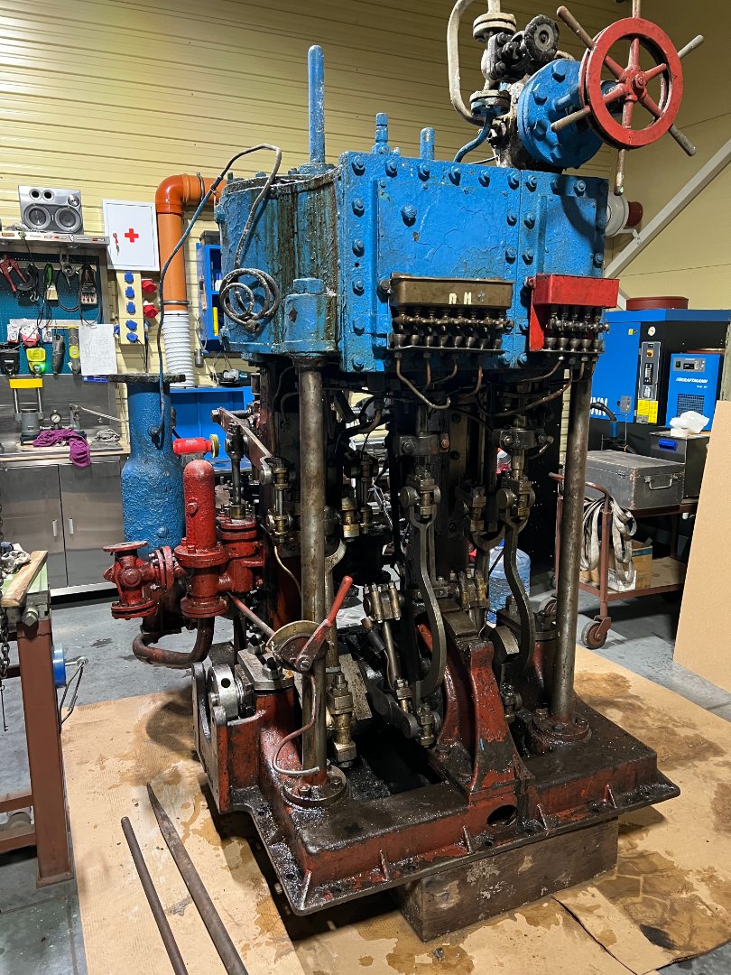 Please help identify the steam engine of the steam tug. Presumably built in 1906. Kiel or Brandenburg. 2 letters G and H are visible on the oilers of the main bearing under the covers.